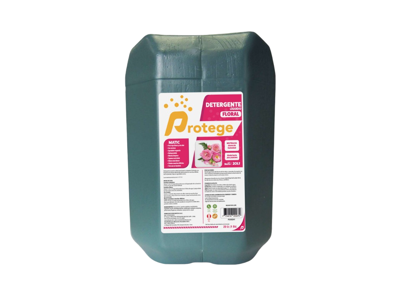 DETERGENTES : LIQUIDO DOMESTICO CONT.: BIDON X 20 LT G.F: 12 MESES – 1 ANO UNIDAD PROTEGE DETERGENTE FLORAL X 20LT P300241