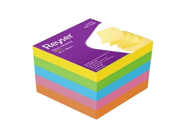NOTA : T/ADHESIVO C/D: CUADRADO L: 76.00 mm A: 76.00 mm CONT: 500 HOJAS COL: AMARILLO NEON/VERDE NEON/CELESTE NEON/ROSADO NEON/ANARANJADO NEON G.F: 12 MESES PAQUETE X 5 TACOS REYSER R100110 R100110