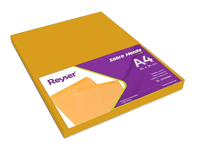 SOBRE : T/MANILA D/PAPEL TAM: A4 COL: AMARILLO G.F: 12 MESES PAQUETES X 50 UNIDADES REYSER SOBMANA4REYSER