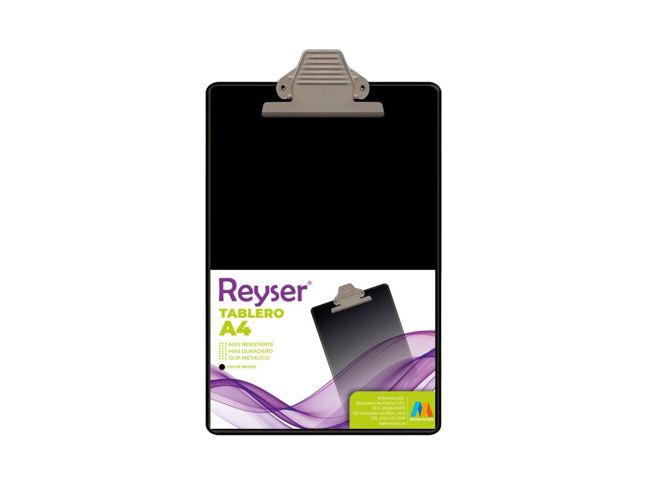 TABLERO : D/ACRILICO C/D: GANCHO D/METAL TAM: A4 CAP. MAX: 200 HOJAS COL: NEGRO G.F: 12 MESES UNIDAD REYSER R100550 R100550